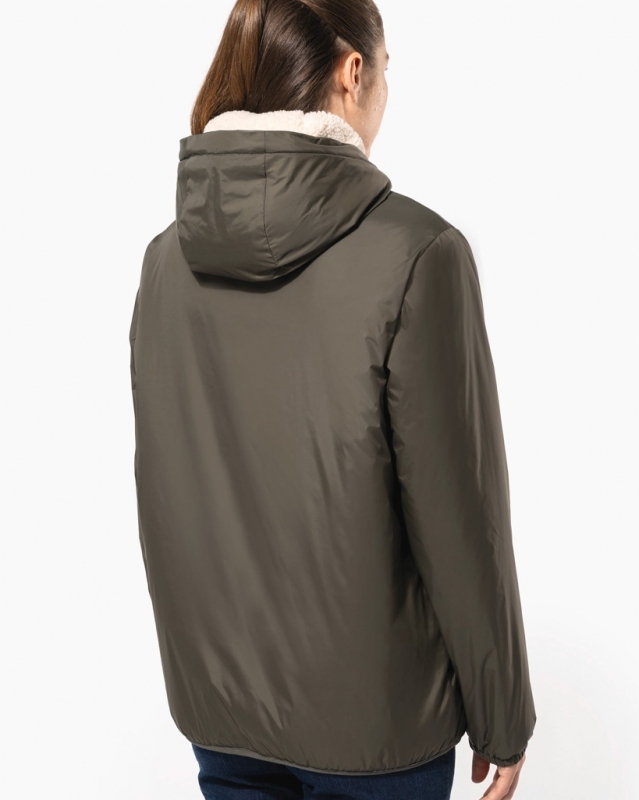 - Intérieur du corps et capuche doublés en sherpa isolant de couleur écrue